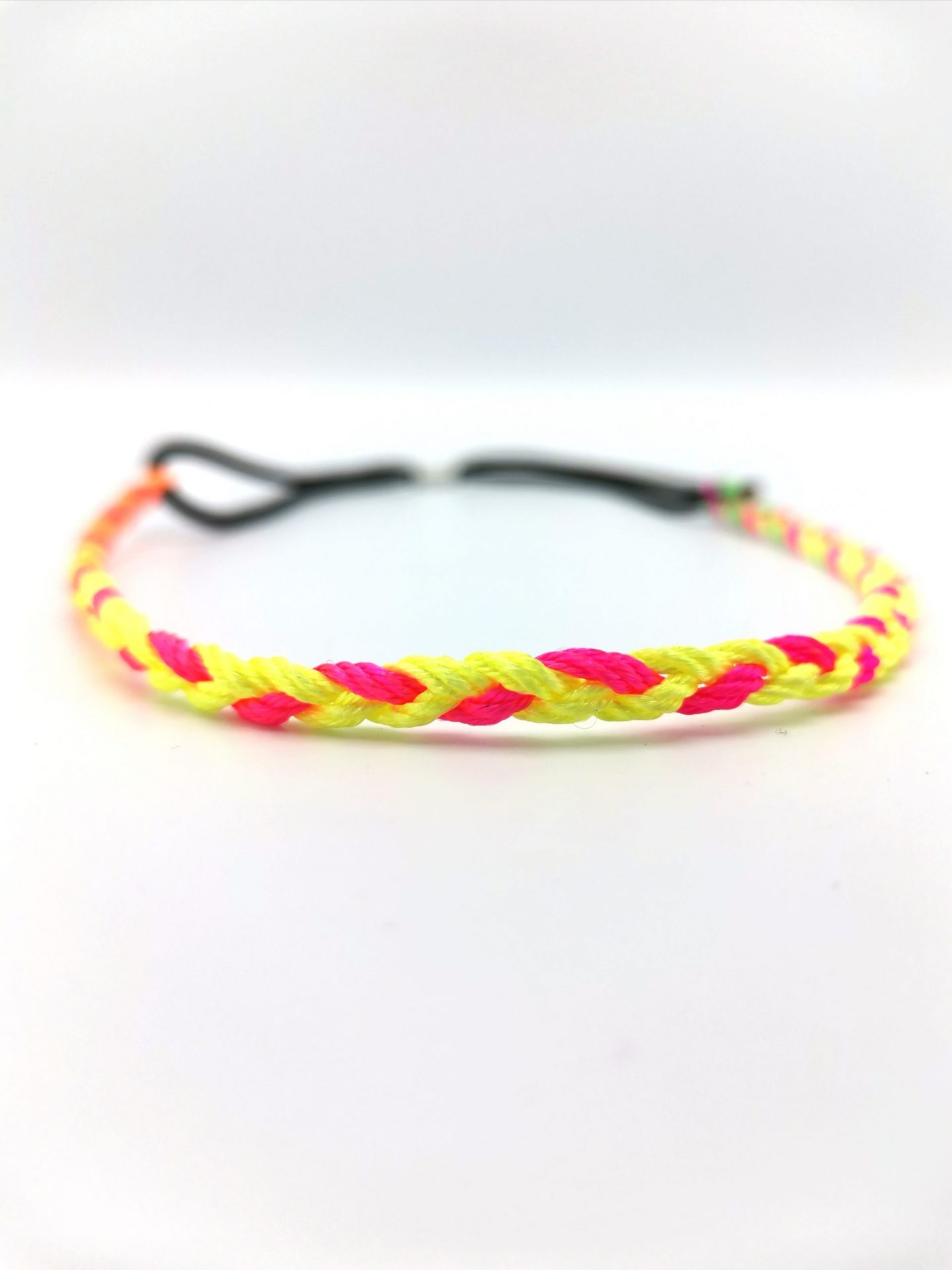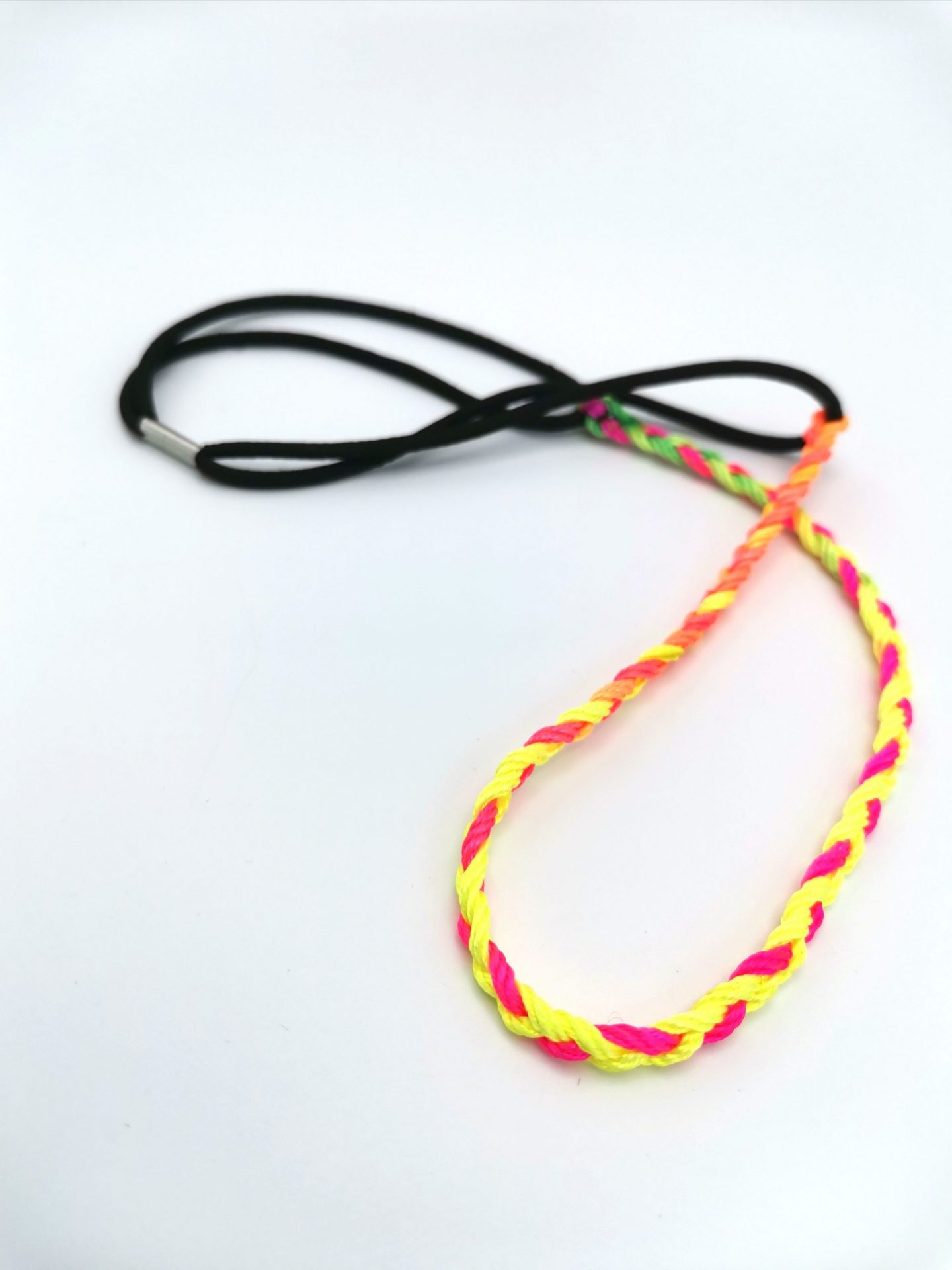 Bentita cu parte elastica, usoara si rezistenta si parte de impletitura din snur multicolor.