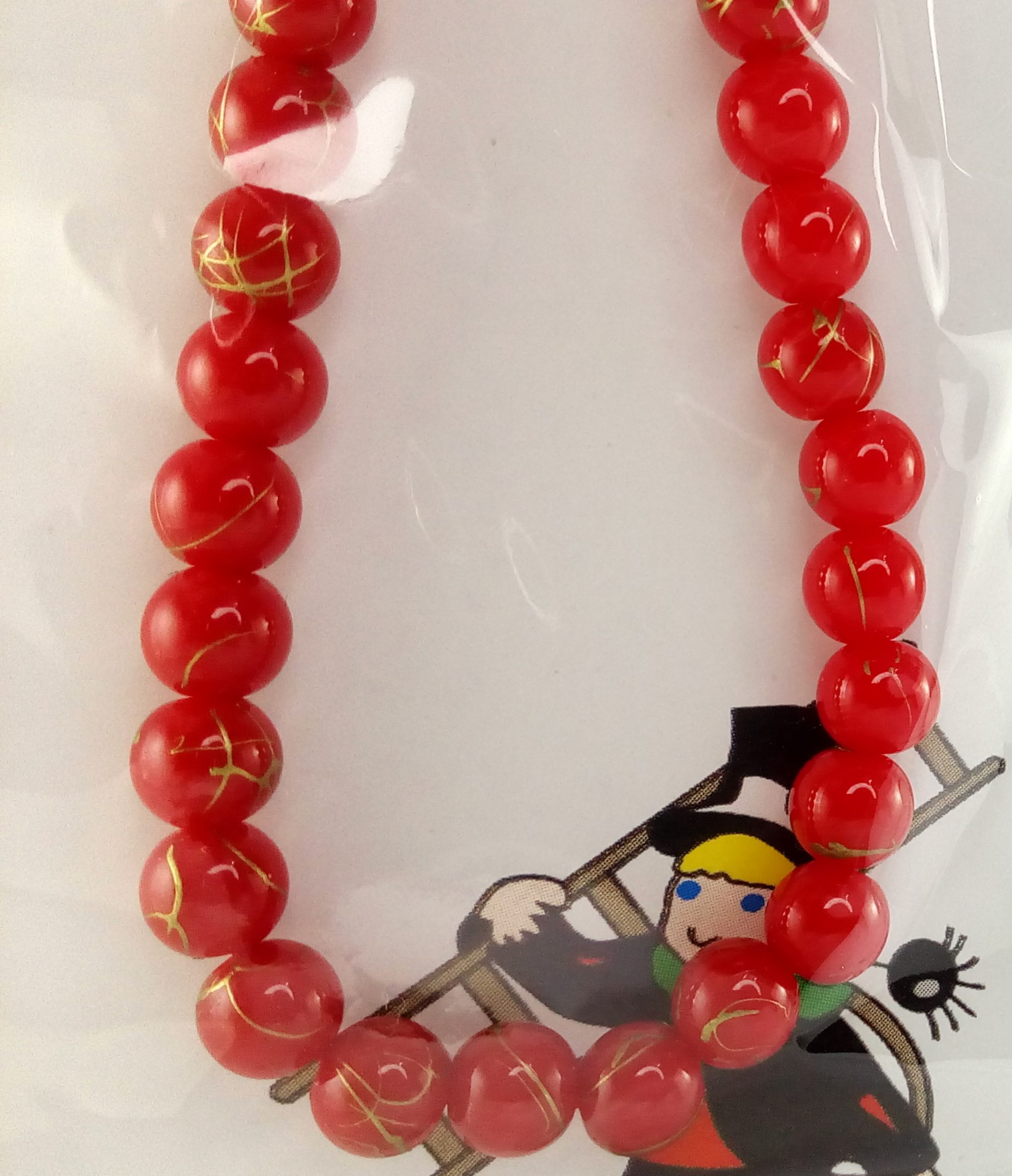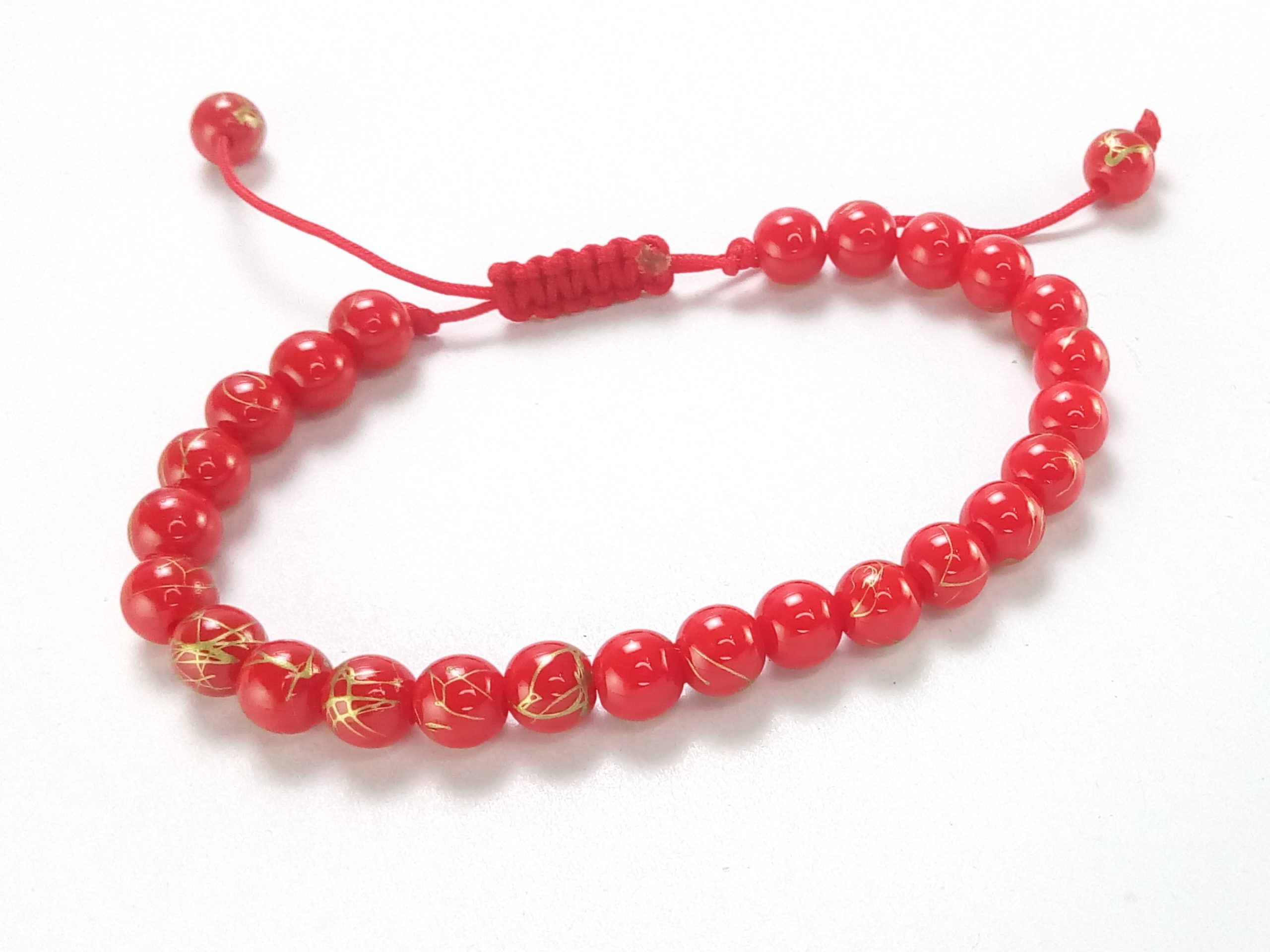 Bratara realizata manual din margele rosii cu insertii aurii si impletitura pentru sistemul de inchidere
