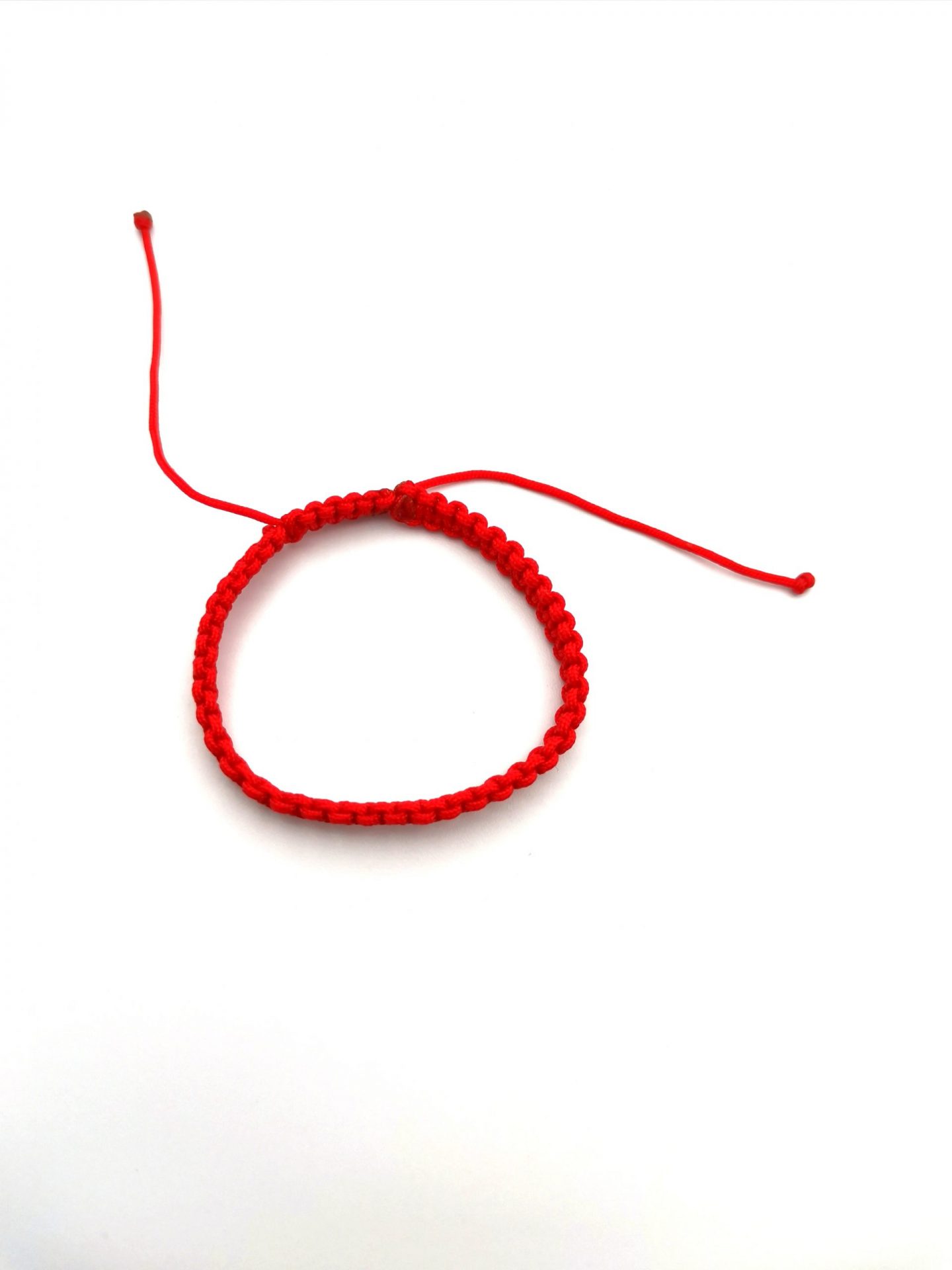 Înnodare: Brățara este realizată cu ajutorul unui sistem simplu de prindere, prin înnodarea celor două capete ale aței la dimensiunea dorită. Astfel, brățara se poate ajusta ușor în funcție de mărimea încheieturii.