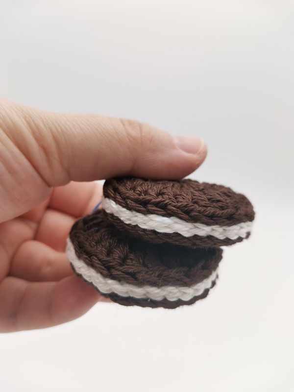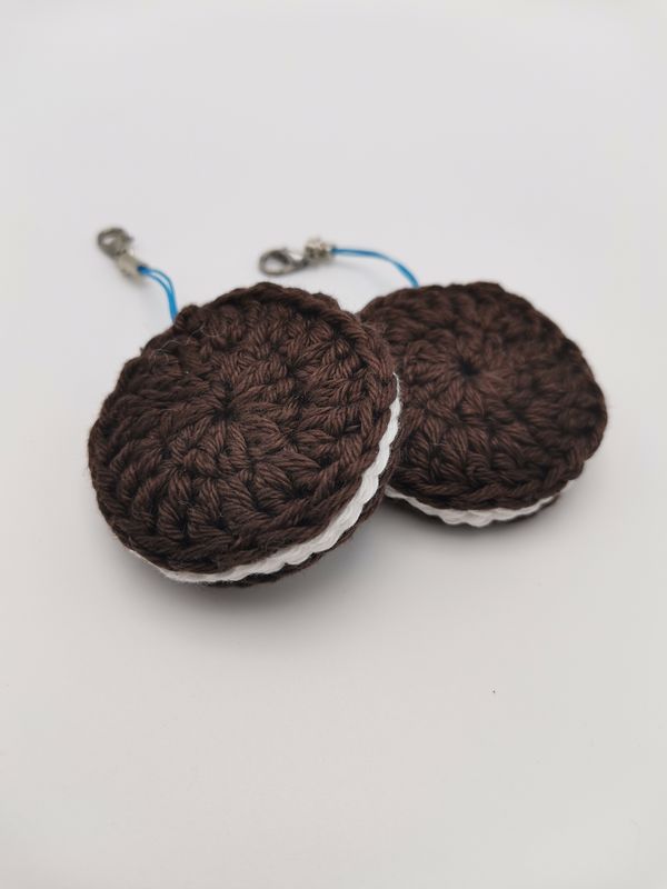 Produsul poate diferi usor de cel prezentat in imagini deoarece fiind lucrat manual fara o schema de lucru, fiecare produs are trasaturi unice. Nu va faceti griji, veti fi incantati cu siguranta de micul breloc oreo crosetat.