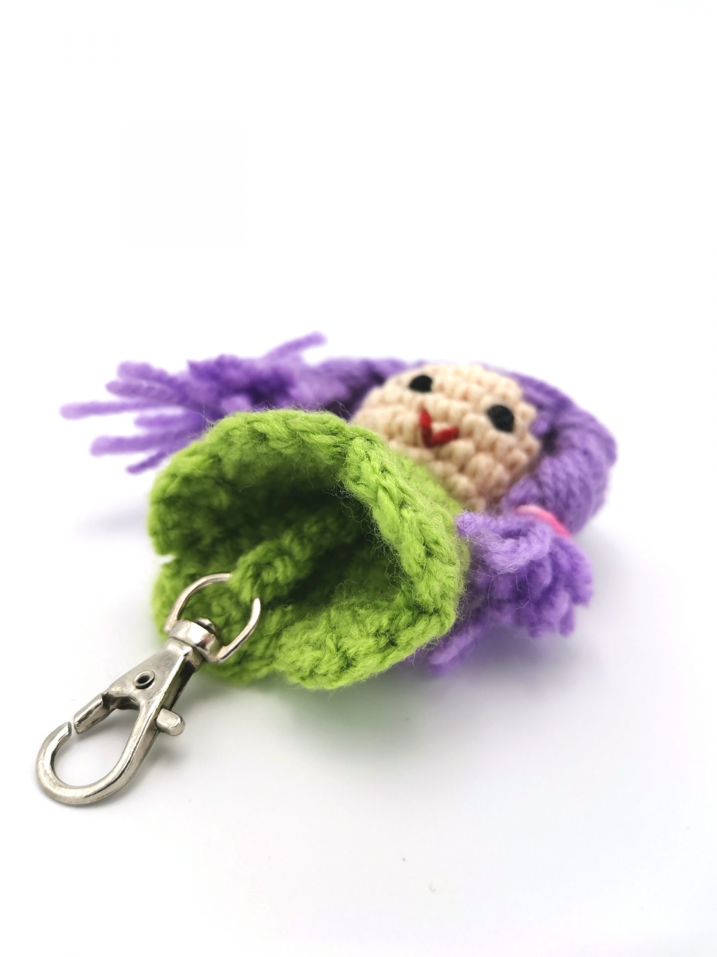 Sistemul de breloc este atasat sub fustita ceea ce face ca brelocul sa poata fi folosit pentru chei. Daca va fi atasat de ceva acesta va sta cu capul in jos.