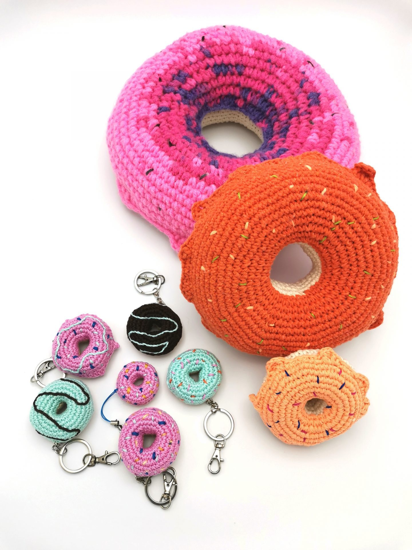 Deoarece este crosetat manual fara o schema de lucru, fiecare breloc gogoasa va avea ceva distinctiv si unic.