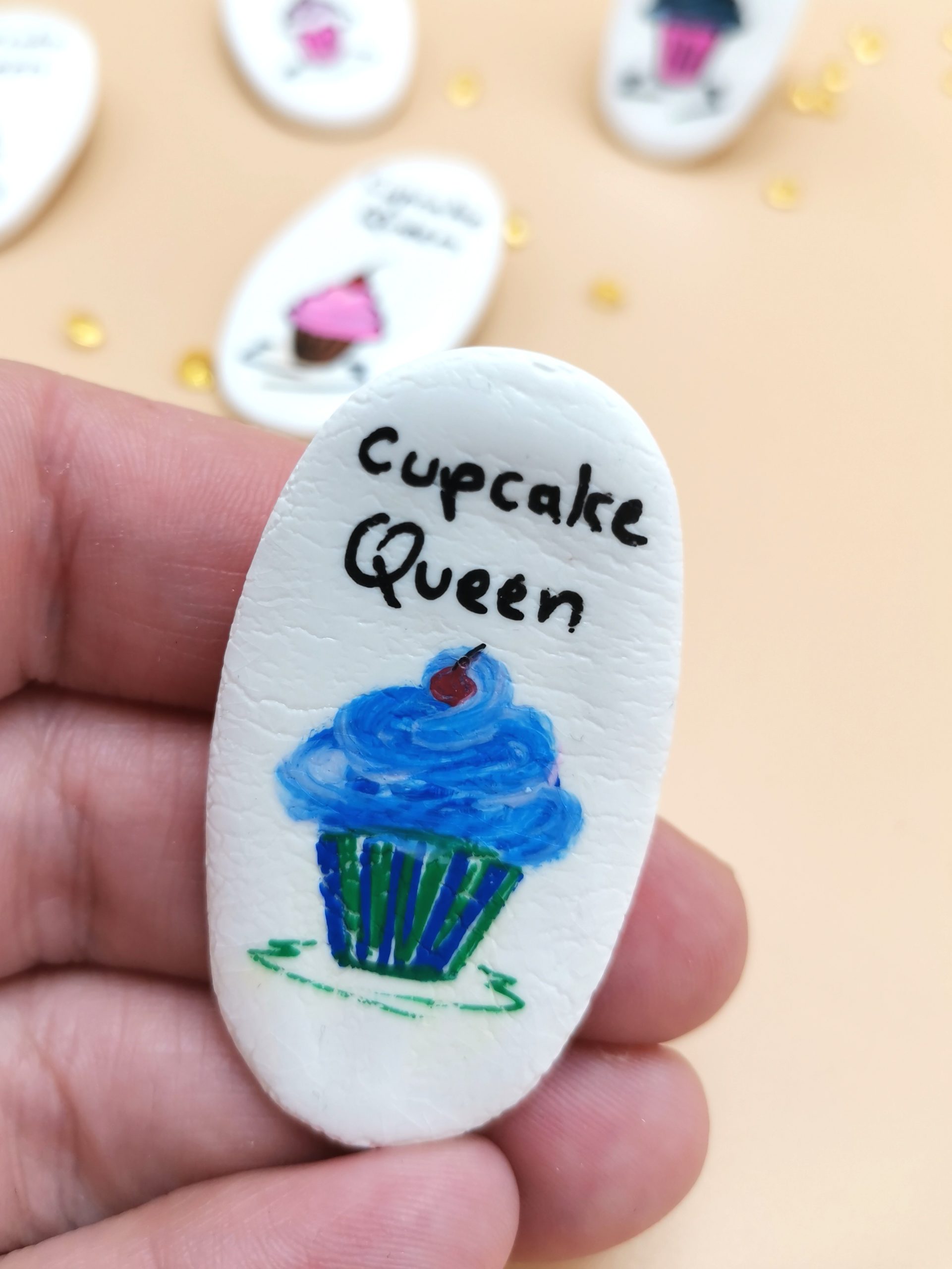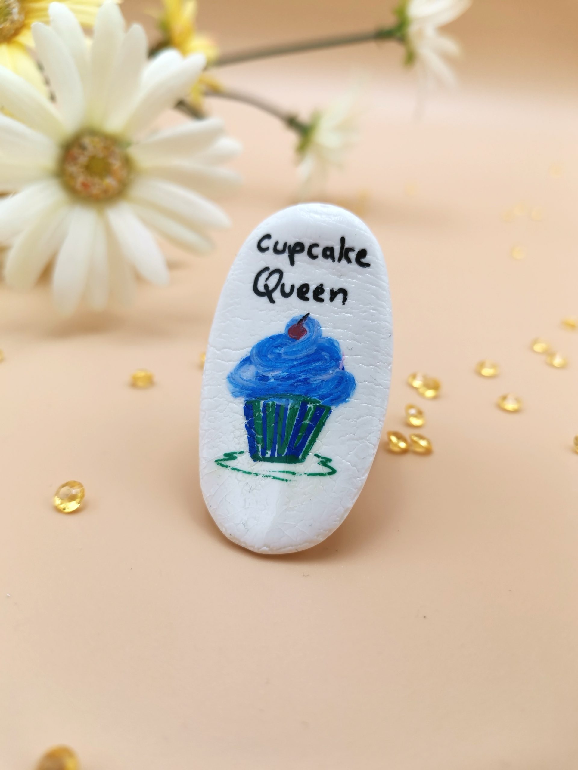 Brosa model Briosa desenata in culori acrilice pe o baza din portelan rece.