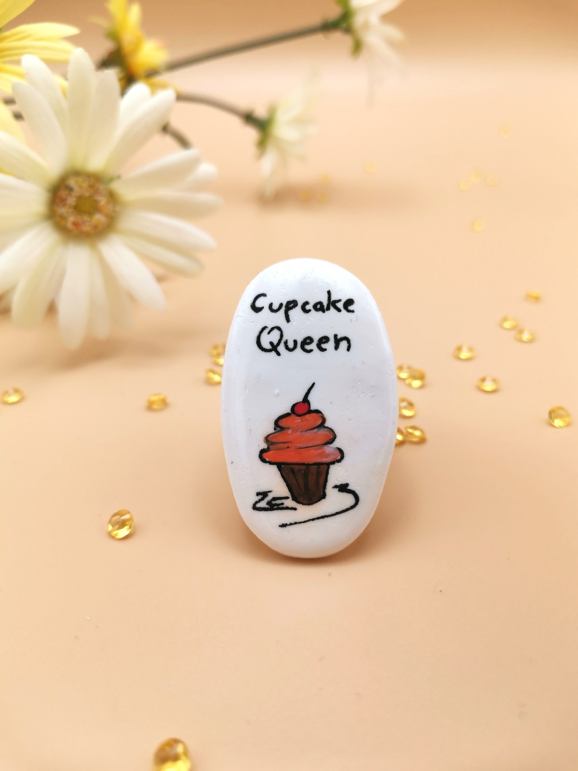 Brosa model Briosa desenata in culori acrilice pe o baza din portelan rece.