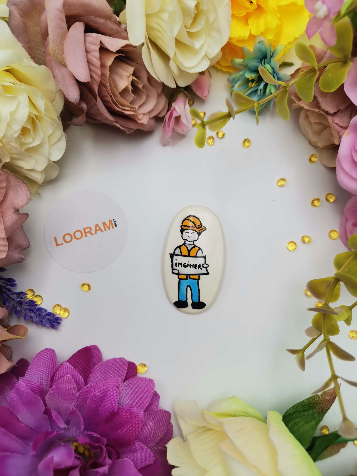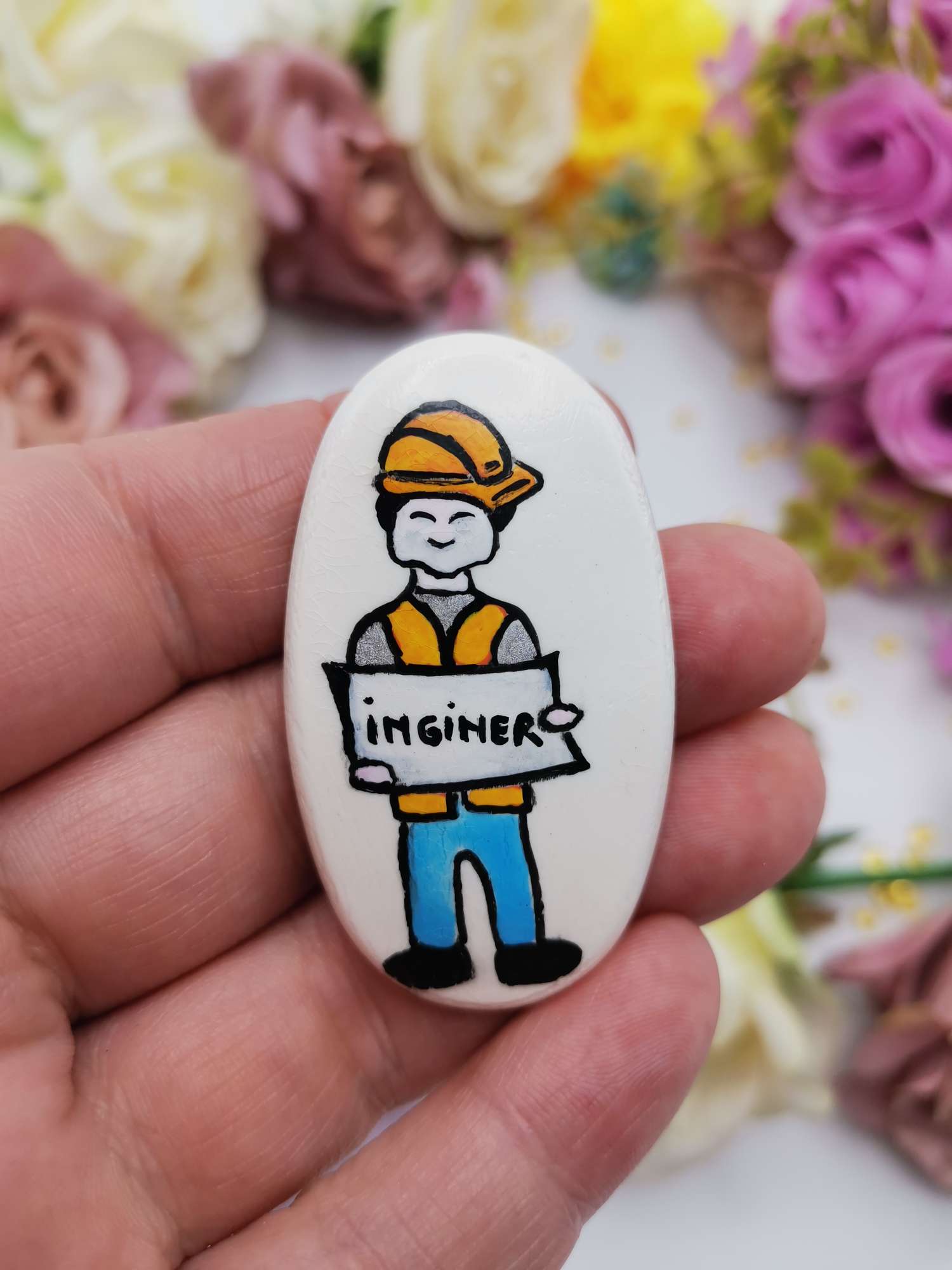 Brosa model INGINER desenata in culori acrilice pe o baza din portelan rece.
