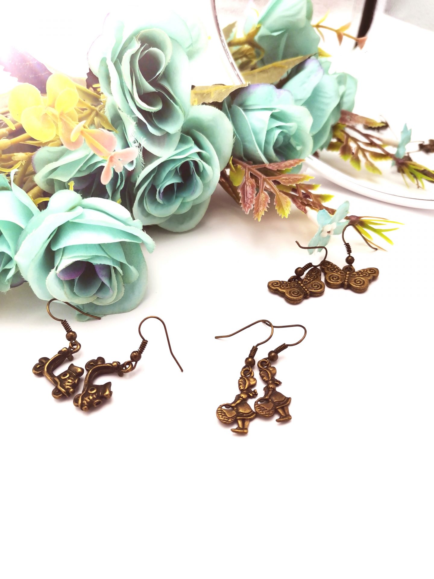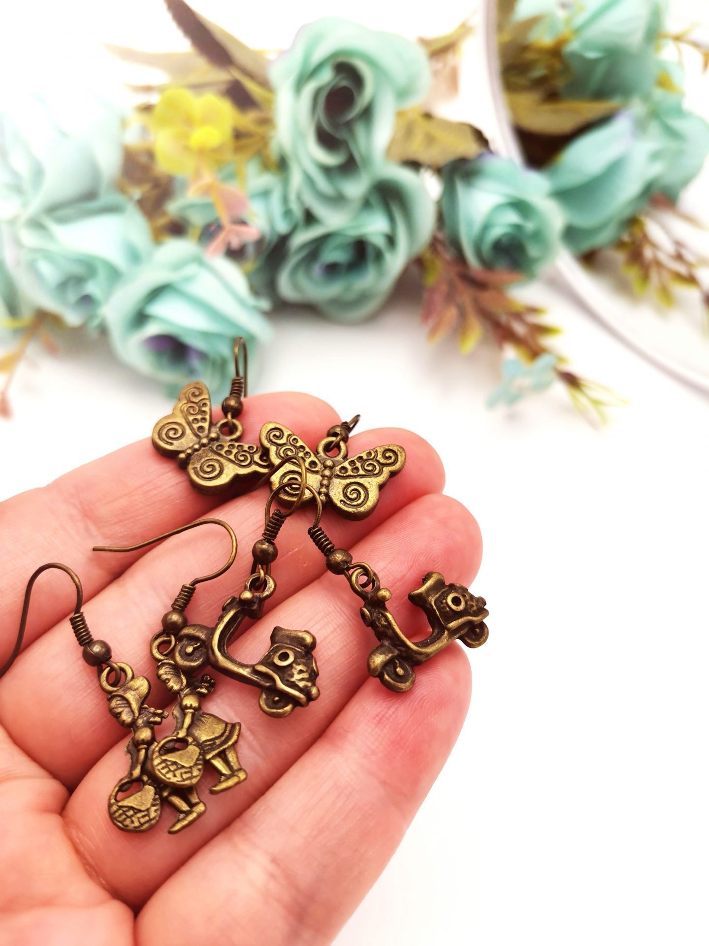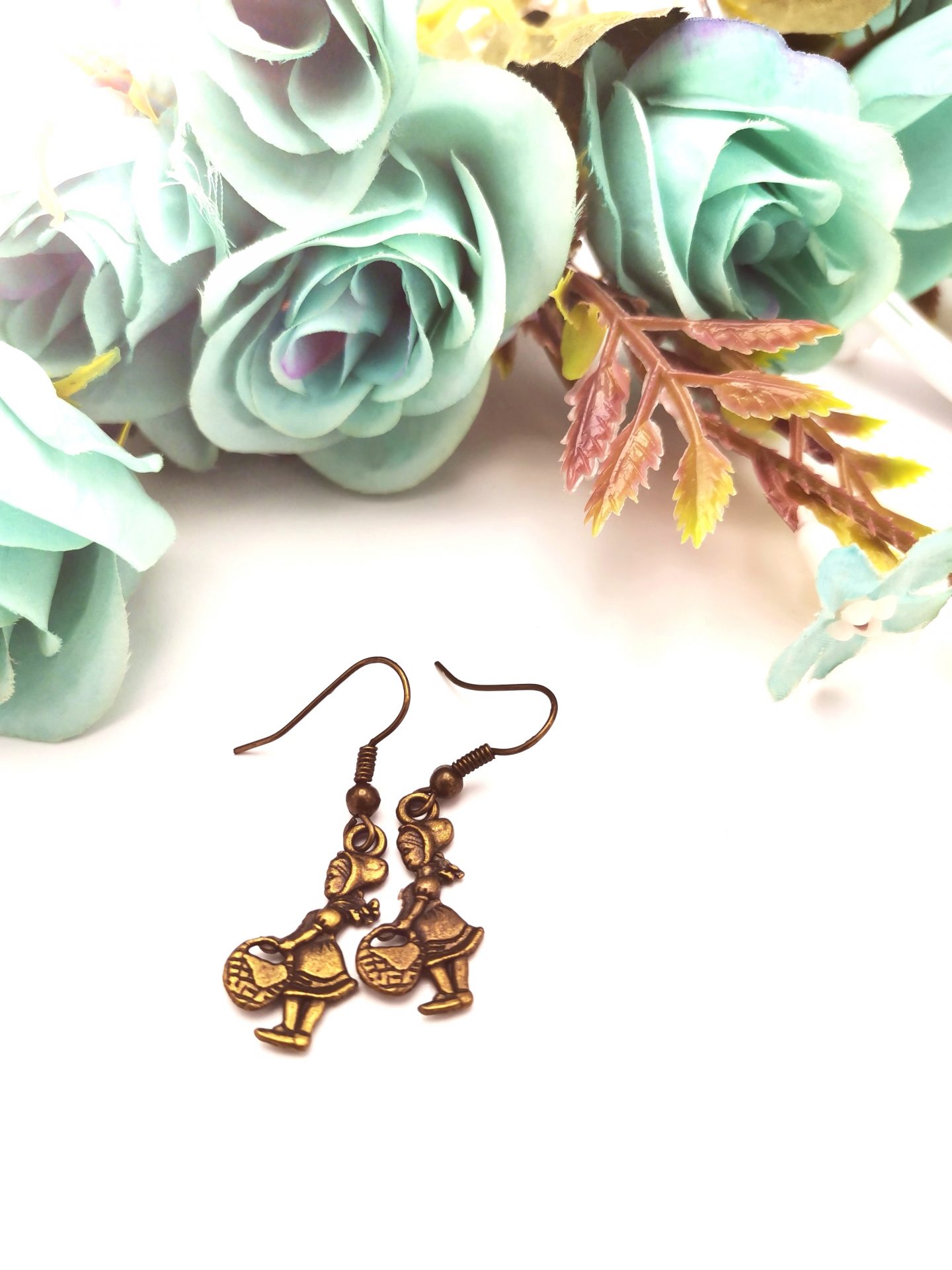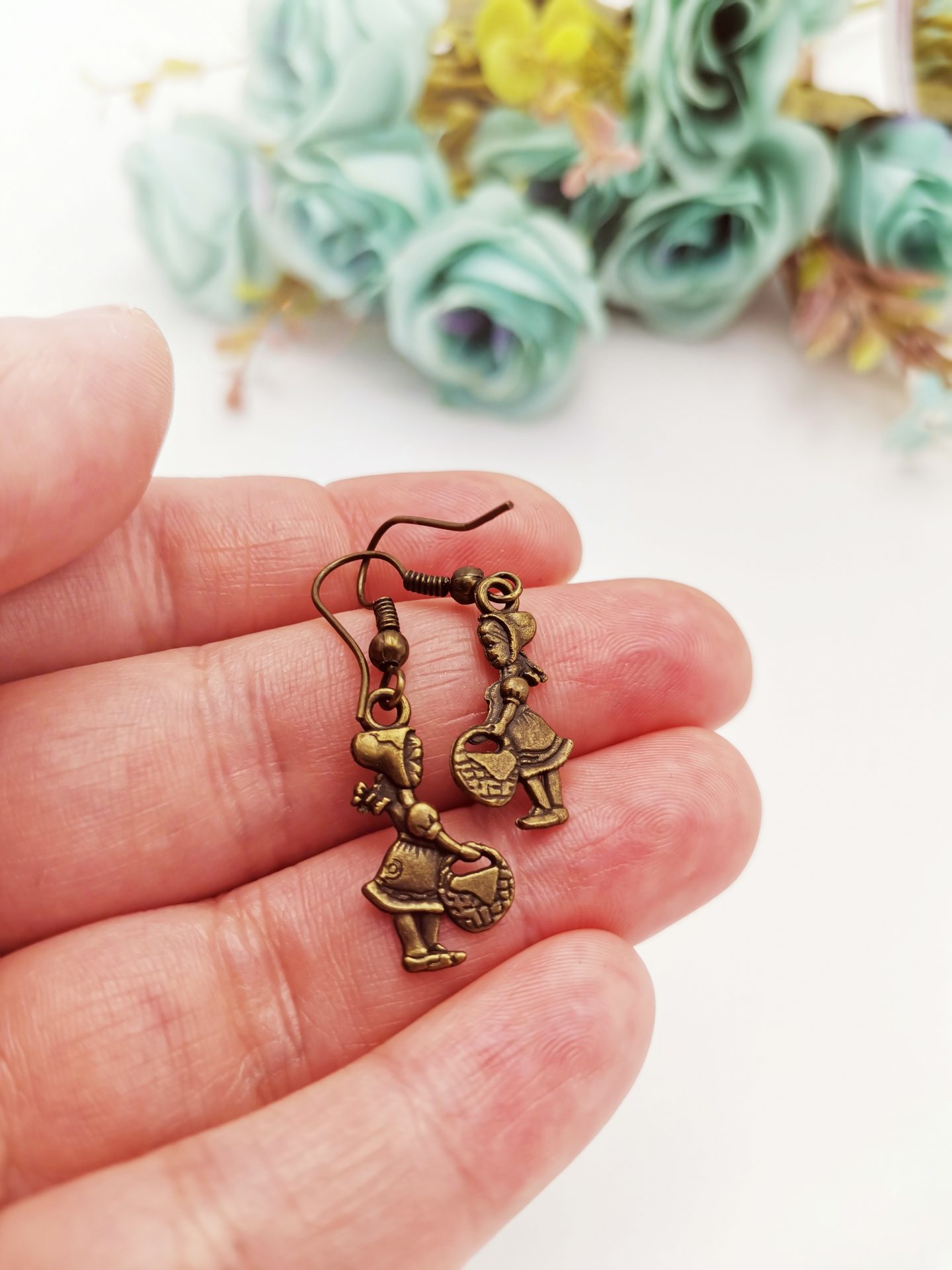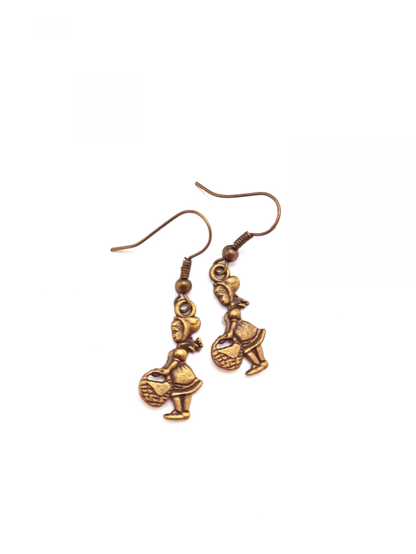 Cercei simpli, realizati cu tortite si accesorii Scufita Rosie în nuanțe de bronz.