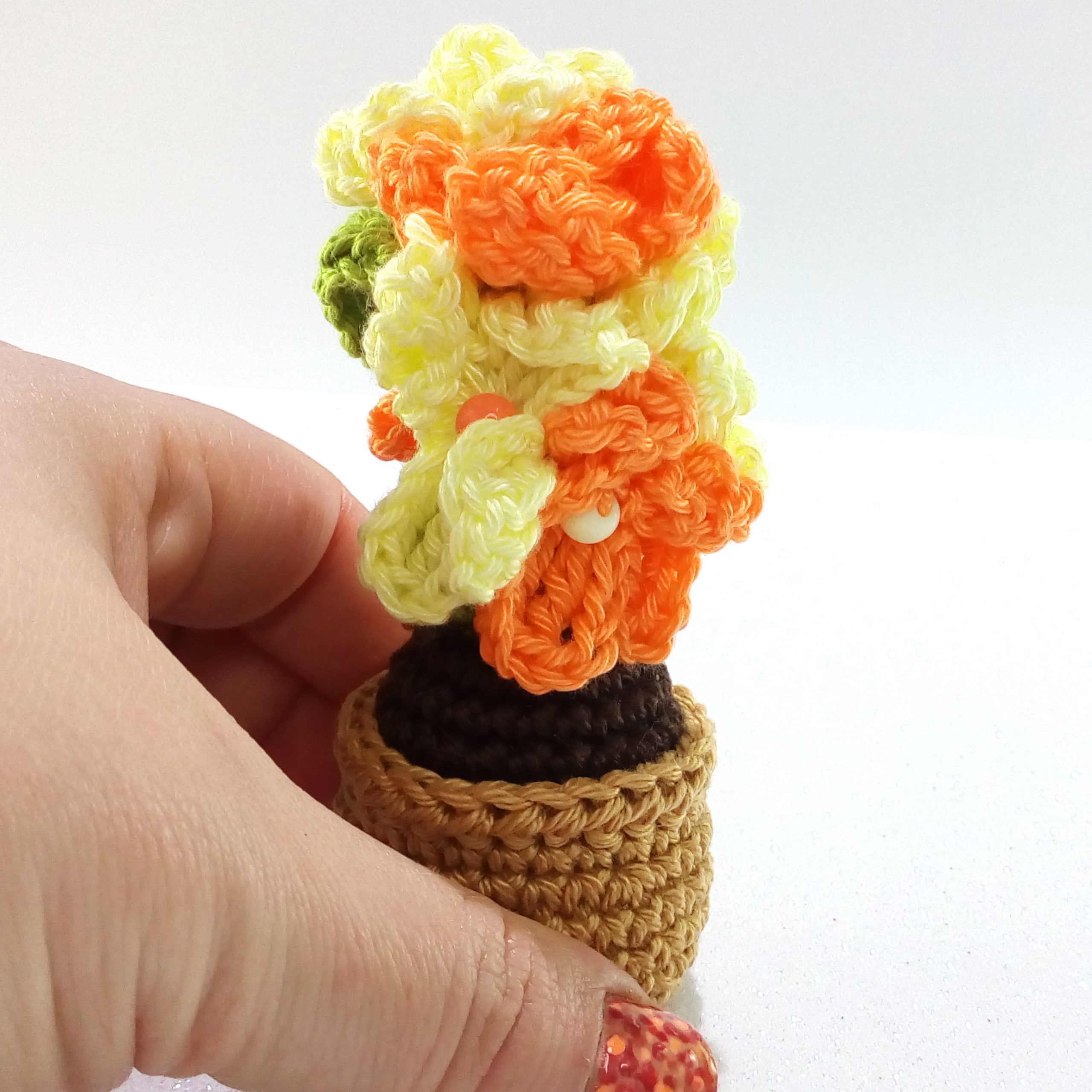 Floare in ghiveci ca o zambila , lucrata manual din bumbac 100%