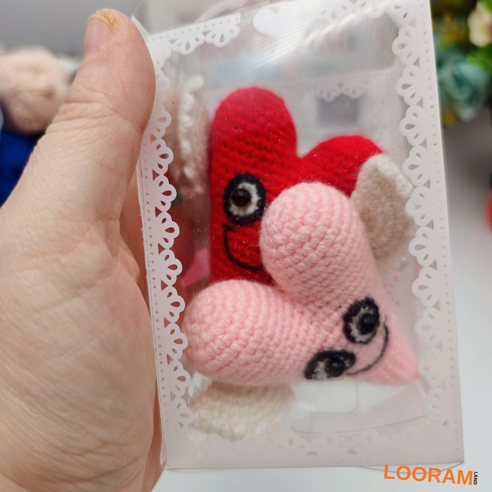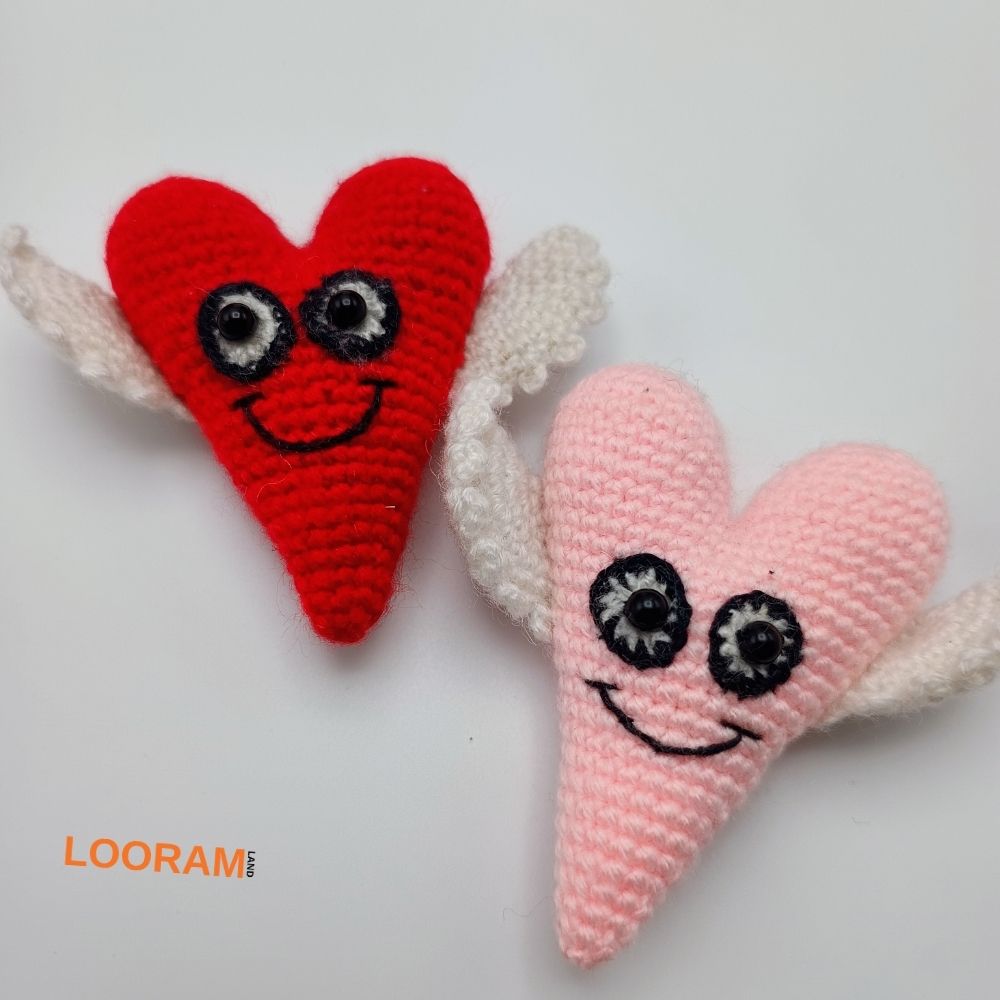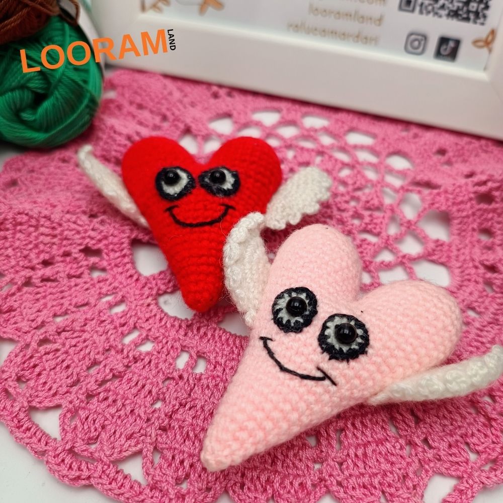 Set cadou jucarii crosetate inimi cu aripi handmade ROZ + ROSU