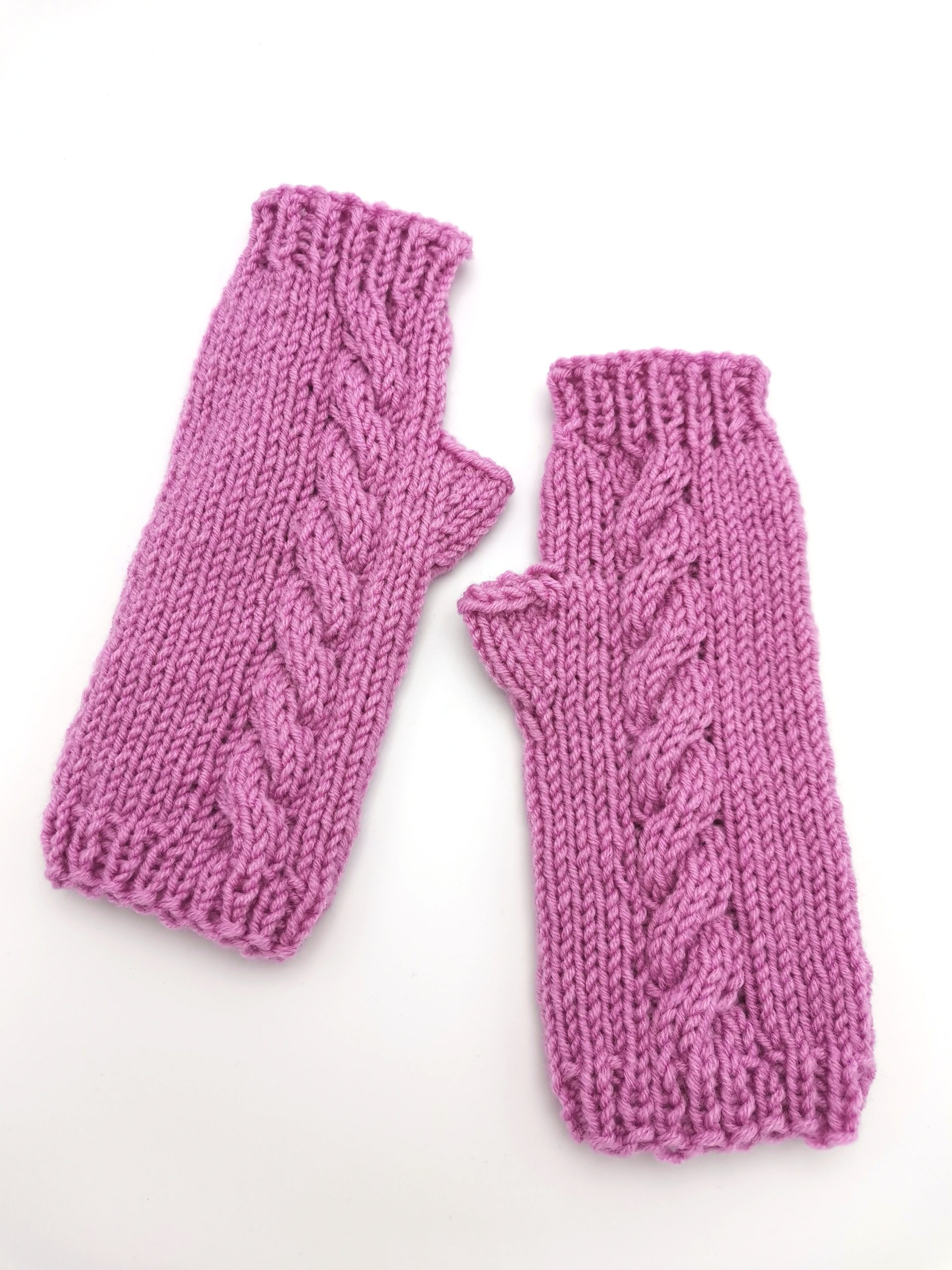 Manusi fara degete tricotate manual din fir in amestec de lana si acril.