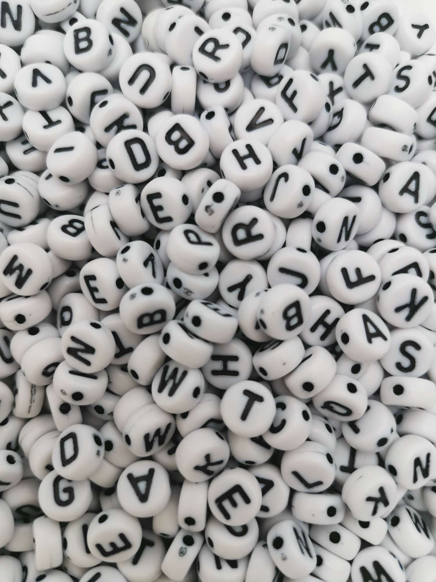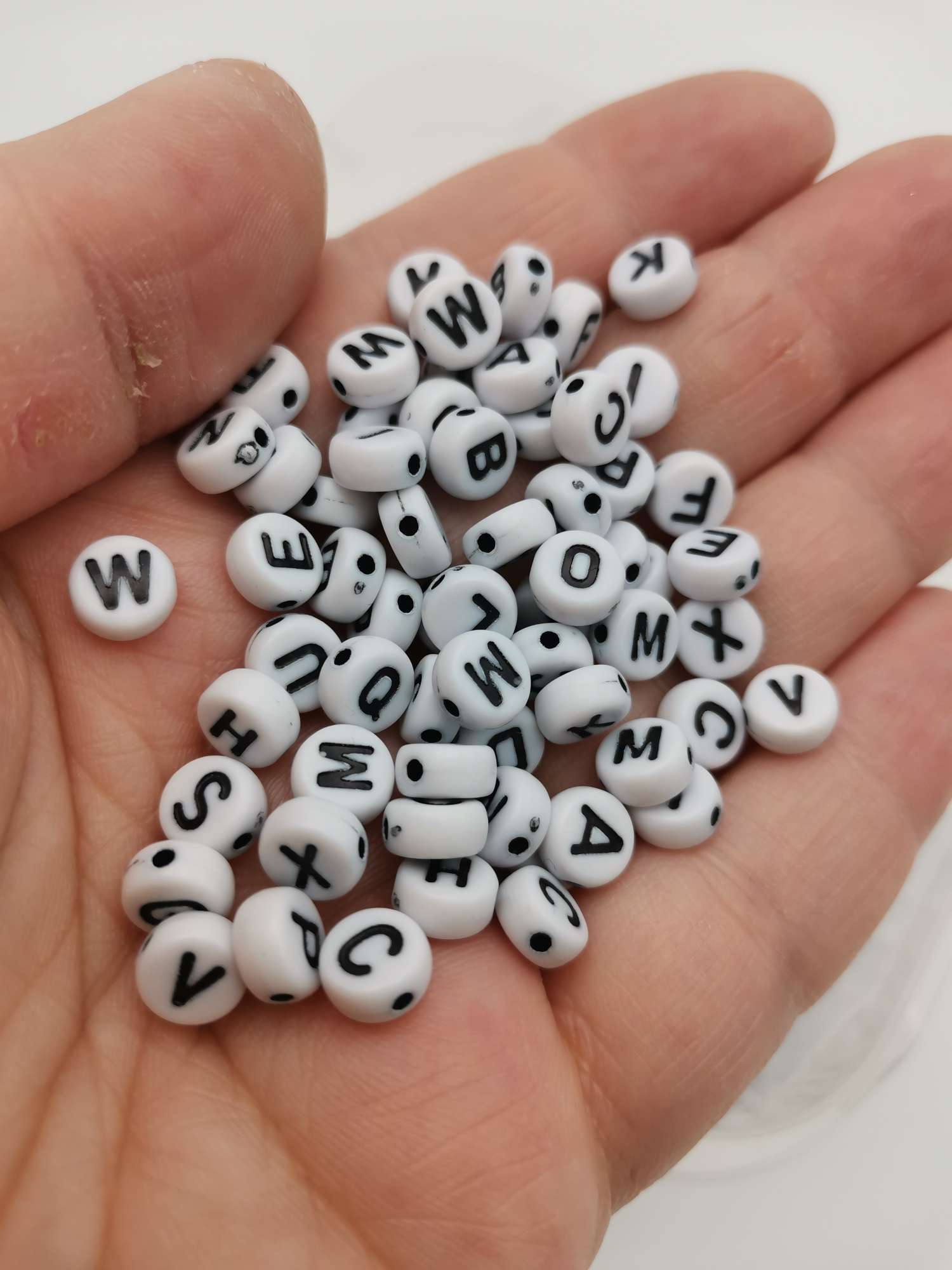 Mixul de margele cu litere negre plate contine margelute din toate literele.