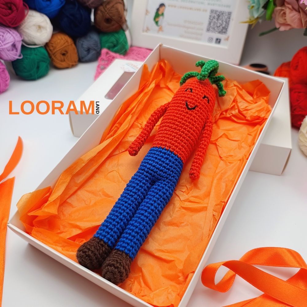 Morcov croșetat manual din bumbac 100% și umplutură antialergică superbal.
