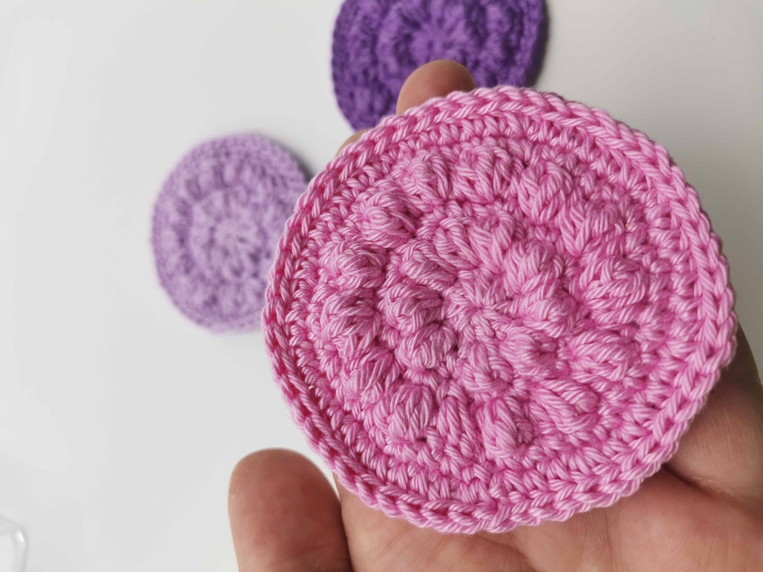 Set 3 dischete demachiante reutilizabile crosetate manual din bumbac pe comanda