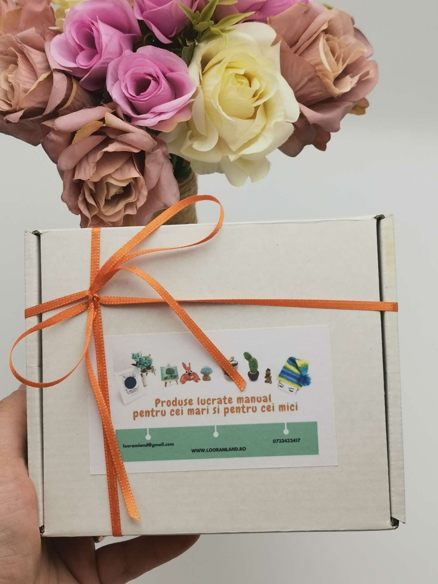 Produsul poate diferi usor de cel prezentat in imagini deoarece fiind lucrat manual fara o schema de lucru, fiecare produs are trasaturi unice. Nu va faceti griji, veti fi incantati cu siguranta de micul cadou realizat manual